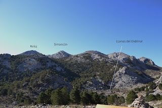 | Una vez que se supera la primera subida nos encontramos frente al Simancón y al Reloj |